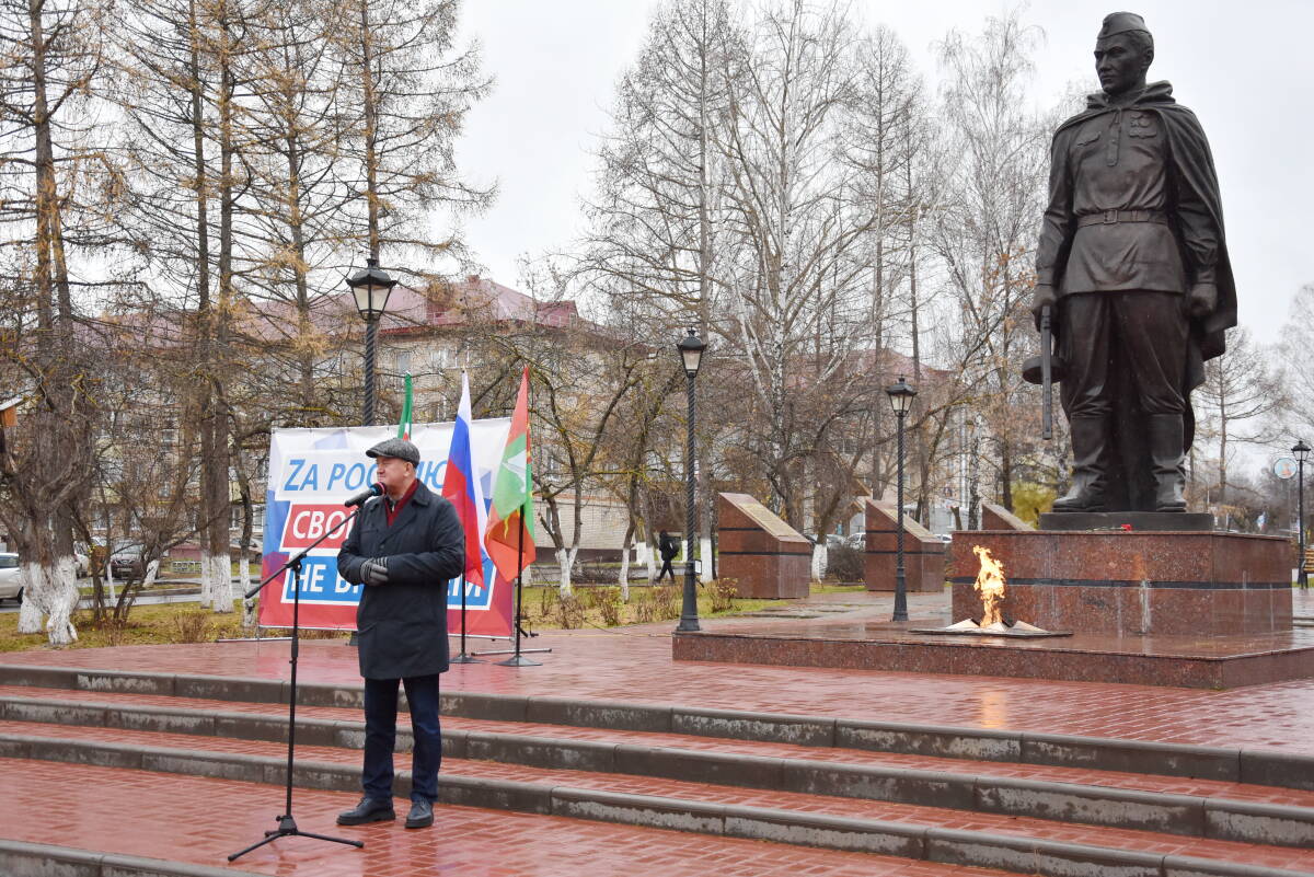 У памятника Воину-освободителю на площади собрались представители администрации, предприятий, волонтеры, участники общественных организаций и простые жители.