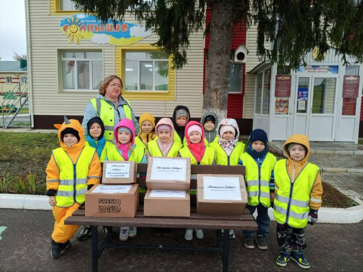 Сотрудники, воспитанники и родители детского сада «Солнышко» города Мензелинска приняли участие в благотворительной акции «Посылка добра». Добрая инициатива была направлена на сбор гуманитарной помощи для участников специальной военной операции.